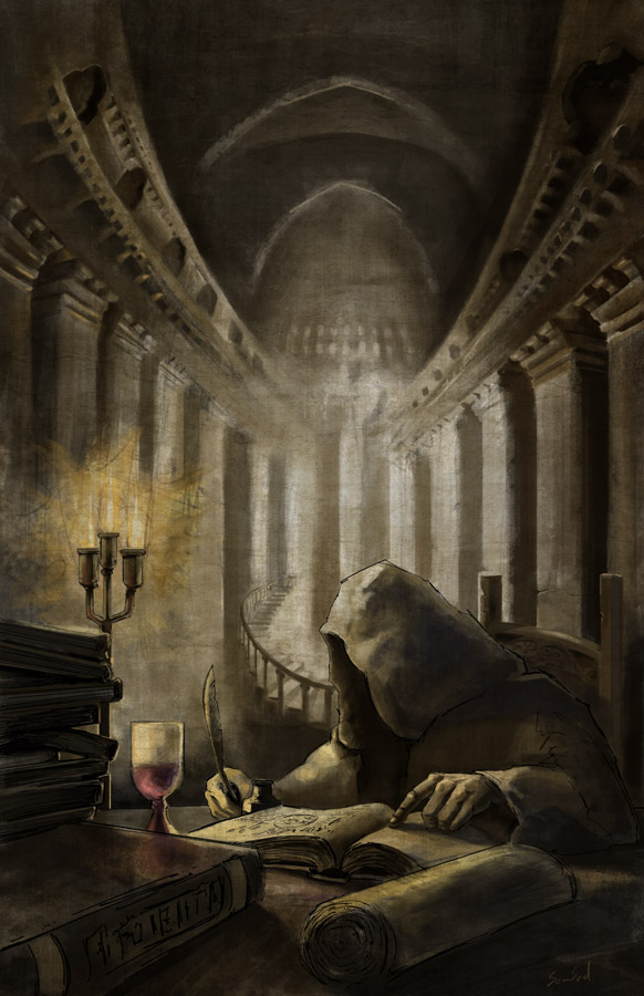 'Sejam bem-vindos aqueles que buscam o conhecimento antigo. Que buscam tomos de sabedoria escritos há muito tempo. Essa biblioteca tem por objetivo reunir e preservar esses tomos que já adornaram as mais prestigiadas Bibliotecas Elficas, Anãs, Humanas e tantas outras. Outros desses tomos foram conseguidos através de valentes aventureiros em transações nas mais famosas Tavernas do plano mortal. Muitos desses lugares podem ter sidos engolidos pelas areias do tempo, mas o conhecimento que lá se encontrou um dia precisa ser preservado para todo o sempre. Com isso, inauguro este novo templo do saber: A Nova Alexandria. Fiquem a vontade para ler nossas copias e contribuir com suas próprias, nos ajudando assim, a manter o legado de histórias e aventuras que preenchem nossa imaginação."